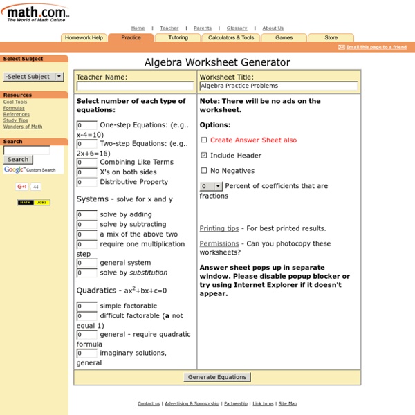 Algebra Worksheet Generator Com. Worksheet difficulty increases with the introduction. You have to select a topic on which you want to generate a worksheet.