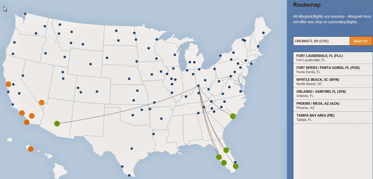 Allegiant Air Route Map 2018. The fees shown for checked and carry-on bags are by route and per bag, each way. Note that bags added before departure but after your initial booking will.