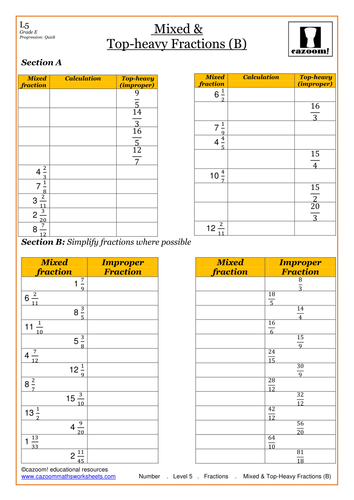 Mixed and Improper Fractions | Teaching Resources