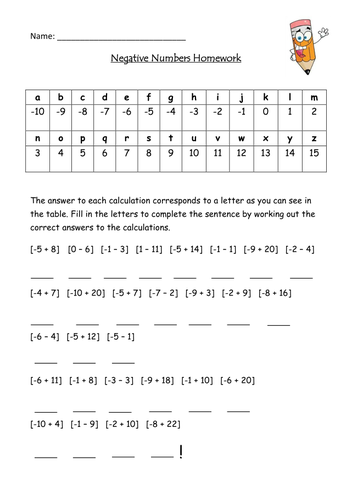 Negative Numbers Code Breaker by Nicola92 - Teaching ...