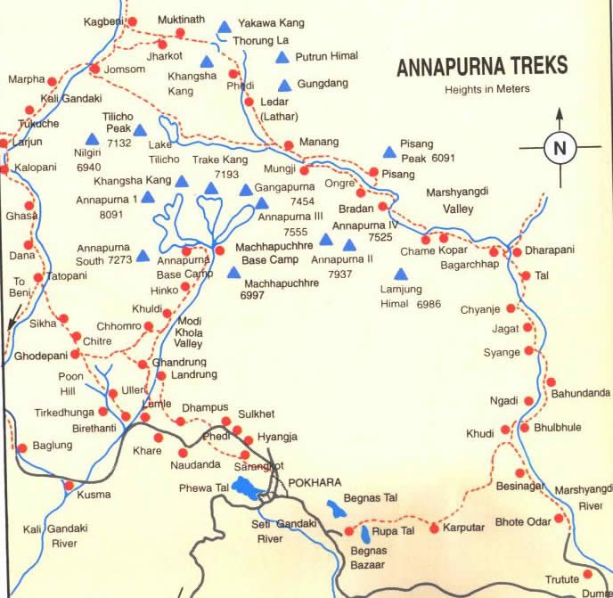 Annapurna Circuit Trek Map. It is in the Annapurna Mountain Region of Nepal. Annapurna circuit Trek also knows as Round Annapurna trek.