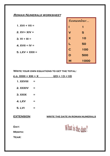 Roman Numerals addition worksheets by Sdethick - Teaching ...
