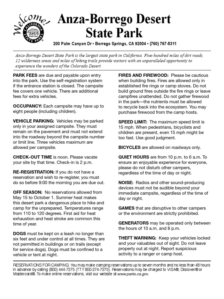 Anza Borrego Desert State Park Map Pdf. PARK FEES are due and payable upon entry FIRES. Adobe PDF reader is free and can be obtained by clicking on the link at the bottom of the page.