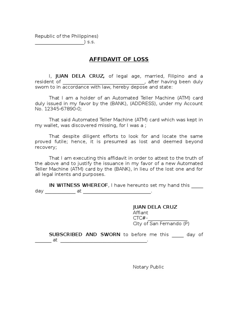 Affidavit Of Loss Id Template Word Philippines. Affidavit Joint of Two Disinterested Persons for Birth. I execute this affidavit to attest to the truth of the foregoing.
